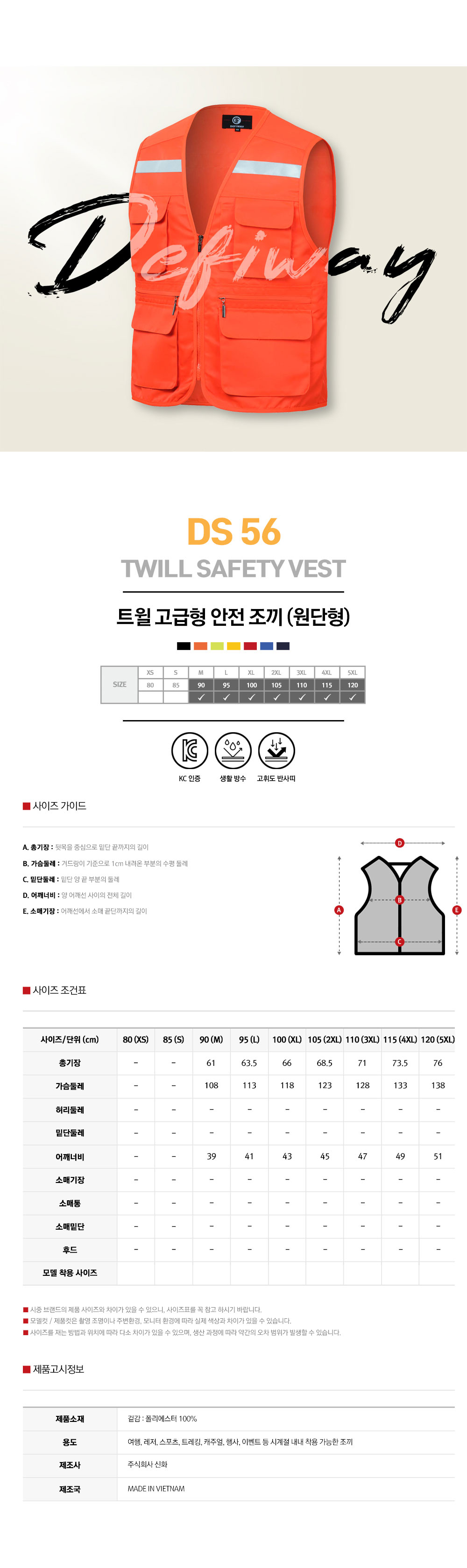 안전조끼 DS56 원단형 [7칼라]