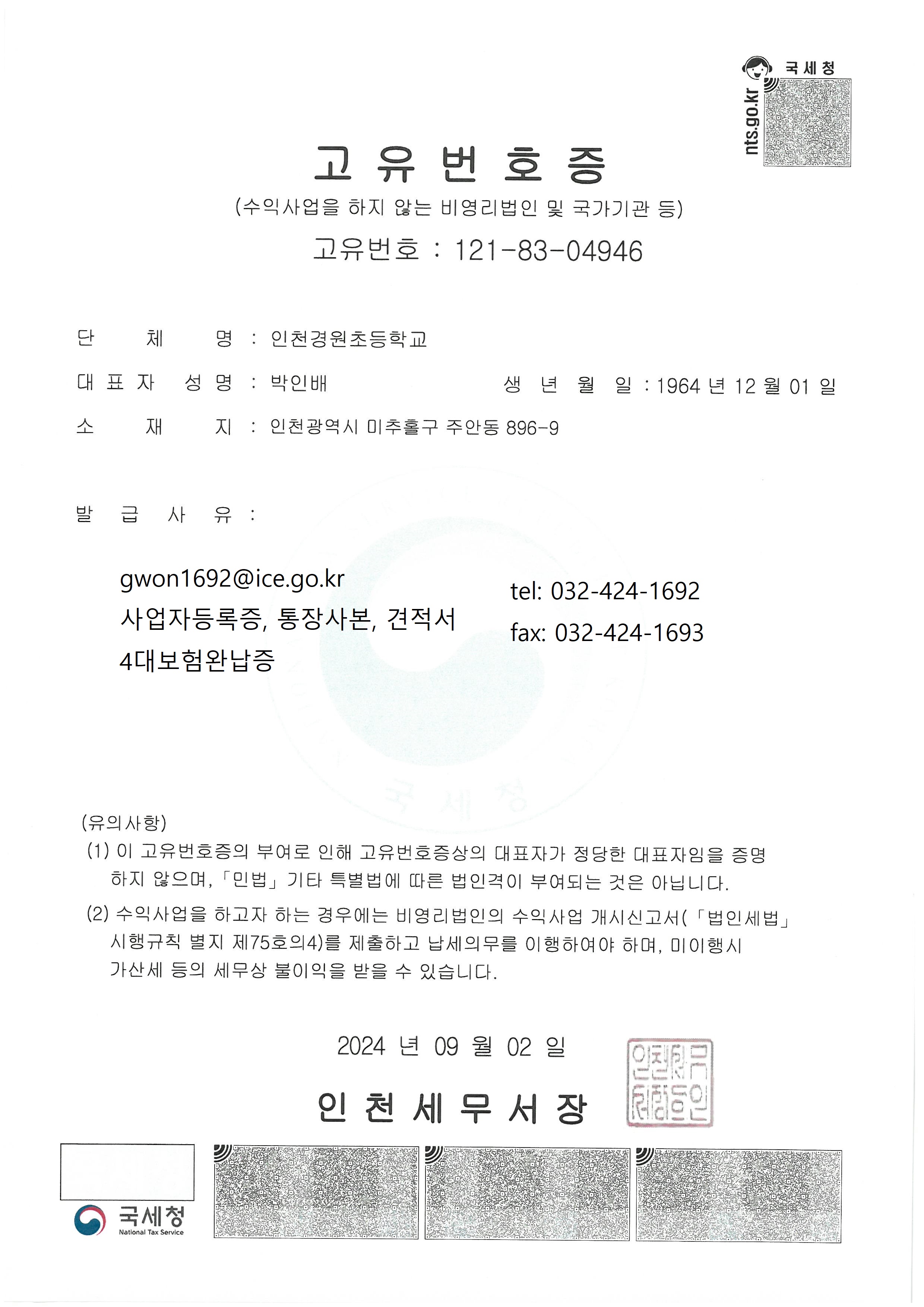 | 고유번호증(2024.9.1.)이메일주소포함.pdf | 2026-02-01 07:46 | 453K | ||